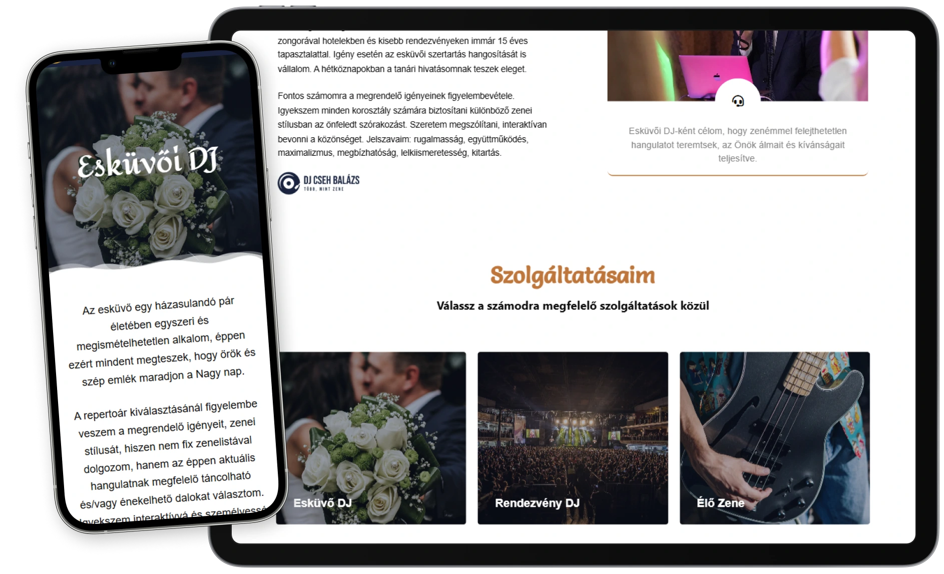 Teljes weboldalfejlesztés és logótervezés a Többmintzene – DJ Cseh Balázs számára, modern megjelenéssel és egységes arculattal.