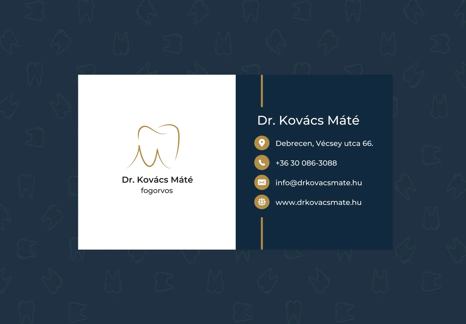 Dr. Kovács Máté fogorvos számára teljesen új weboldalt és vizuális alapokat készítettünk, hogy a rendelő könnyen megtalálható és jól elérhető legyen az online térben.