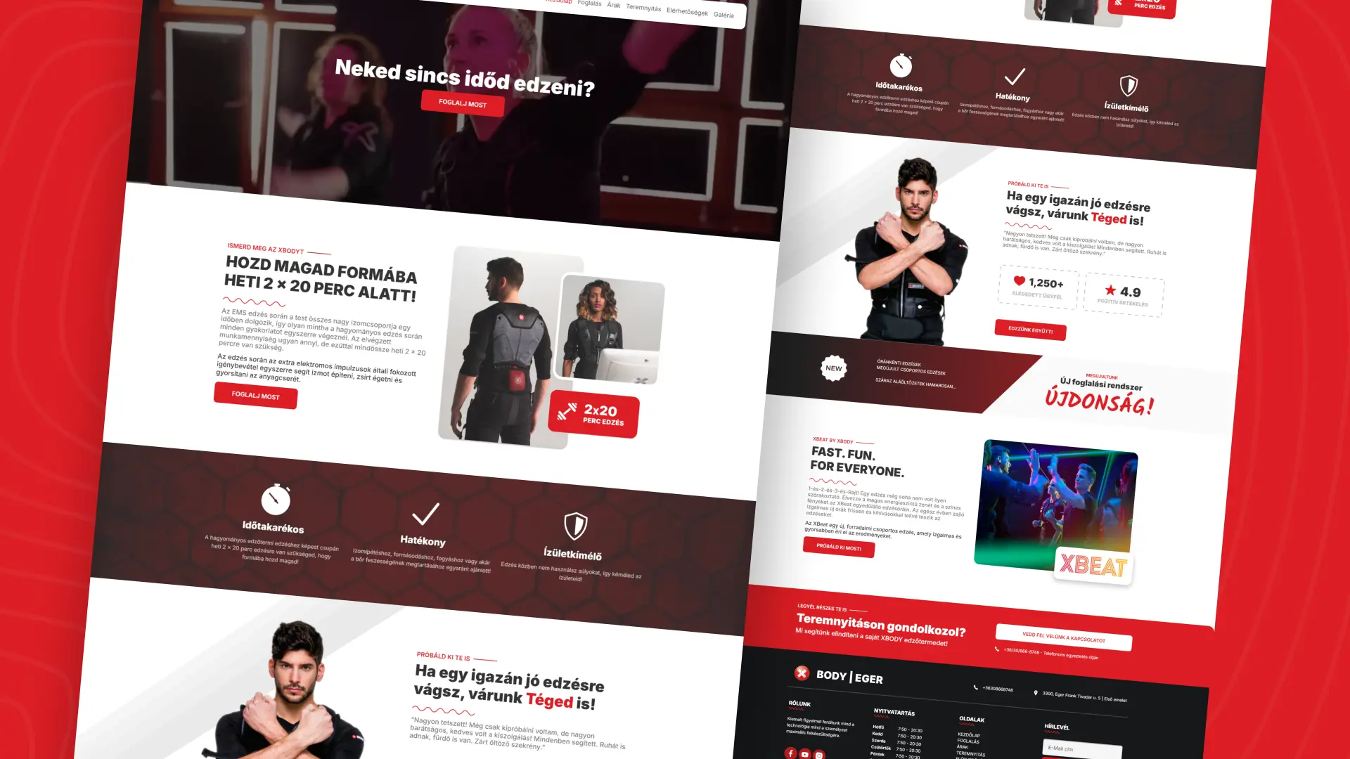 Az XBody Eger számára egy teljesen egyedi fejlesztésű online megjelenést készítettünk, amely tükrözi az XBody edzésmódszer dinamizmusát és professzionális szemléletét.